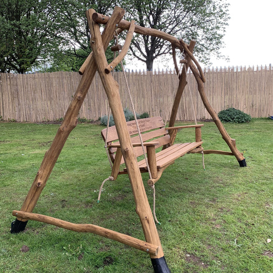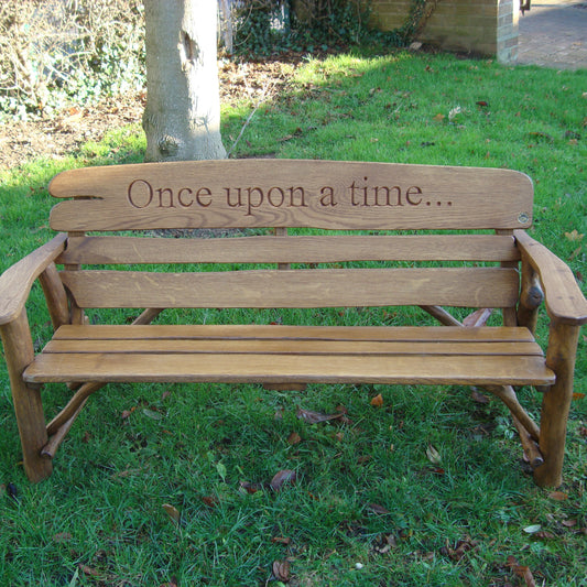 Rustic Oak 3 Seater Memorial Swing Seat with Carved Inscription