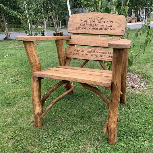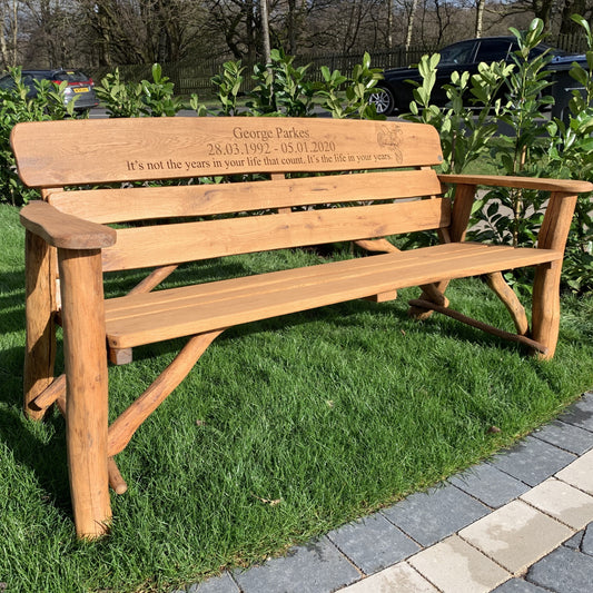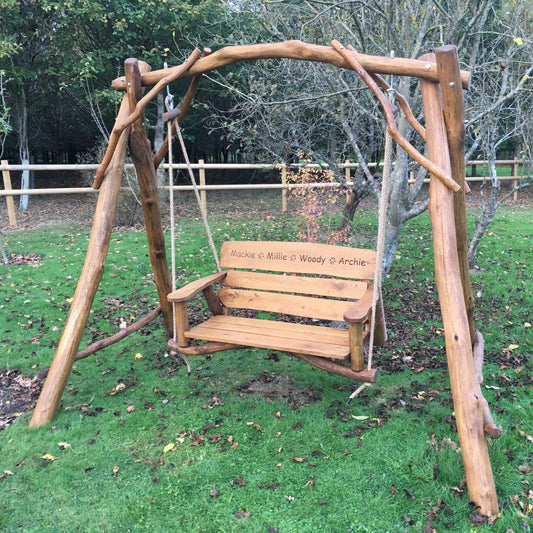 Rustic Oak 2 Seater Memorial Swing Seat with Carved Inscription
